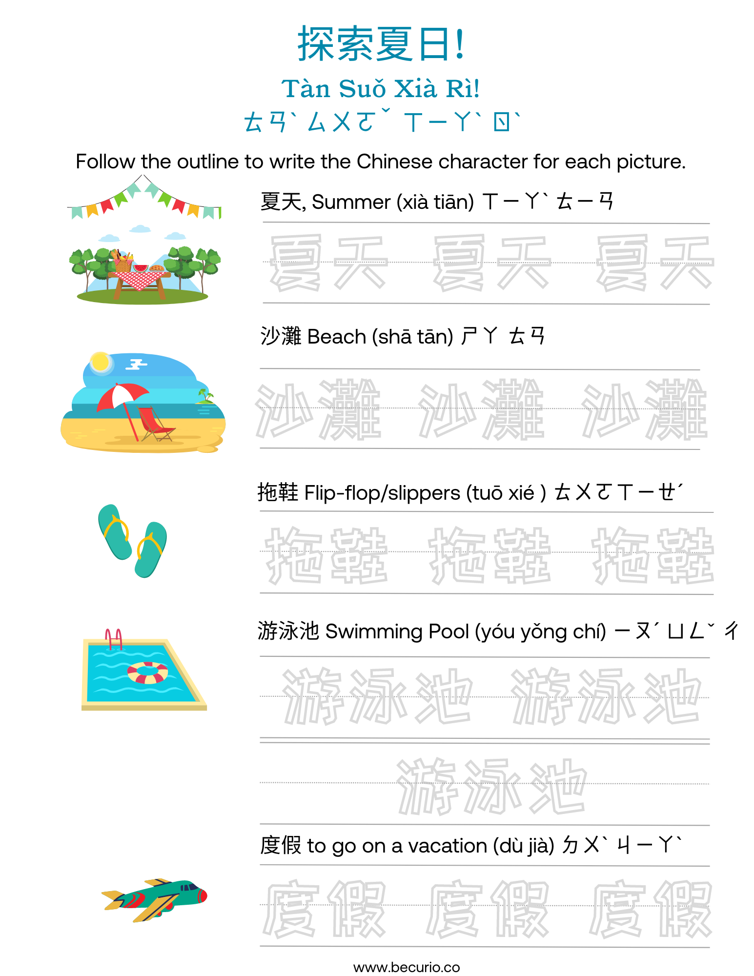 Summer is here! We're excited to share three fun tracing activities in Spanish, Traditional Chinese, and Simplified Chinese. These worksheets feature popular summer words, helping kids improve fine motor skills and learn new vocabulary.