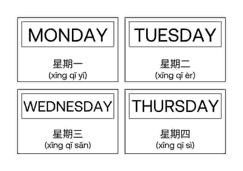 Language Basics - Days of the Week in Simplified + Traditional Chinese and Pinyin