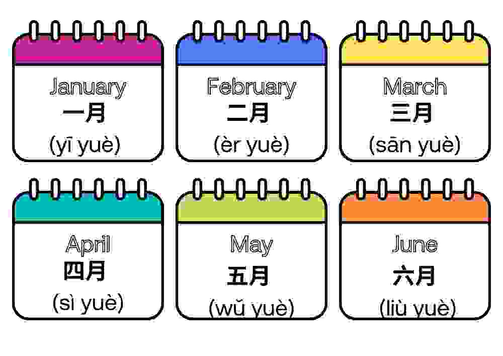 Language Basics- Months of the Year in Simplified + Traditional Chinese and Pinyin