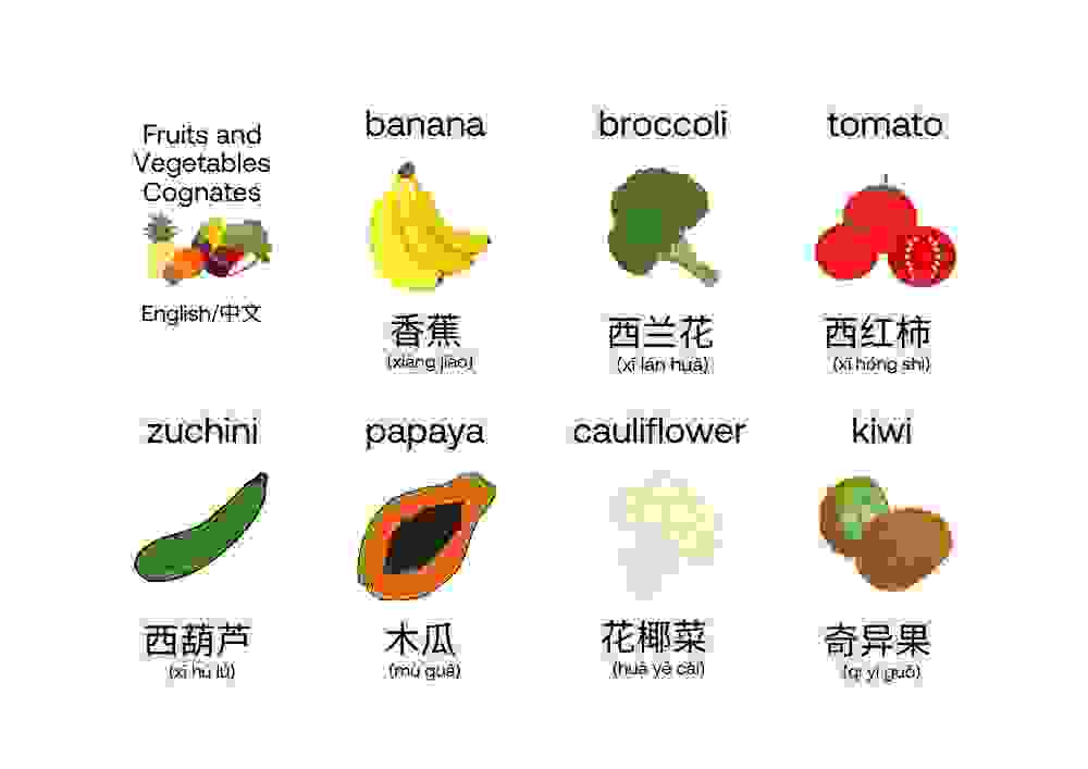Language Basics- Fruits and Vegetables in Simplified Chinese and Piinyin